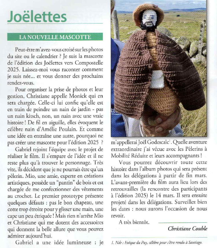 Pour faire connaitre cette belle aventure, notre responsable de la commission Joëlettes a écrit l’article joint qui est paru dans le bulletin de l’association « Chemins de Compostelle en Rhône-Alpes » n°99 de février 2026